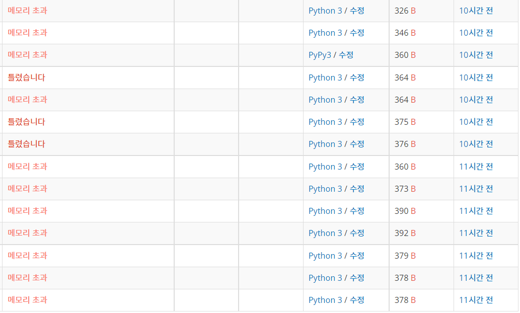 메모리초과의 늪에서 한참동안 빠져있던 문제였다.