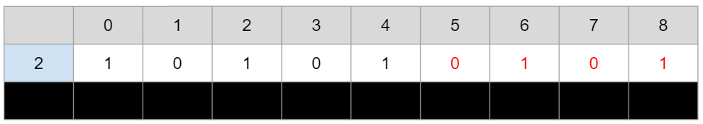 이 방식으로 2원으로 만들 수 있는 값의 가지수를 쭉쭉 채워갈 수 있다.
